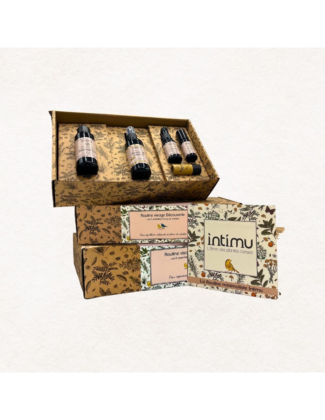 Ce coffret incarne la philosophie Intimu : des soins vivants, sensoriels et profondément respectueux de la peau et du vivant.