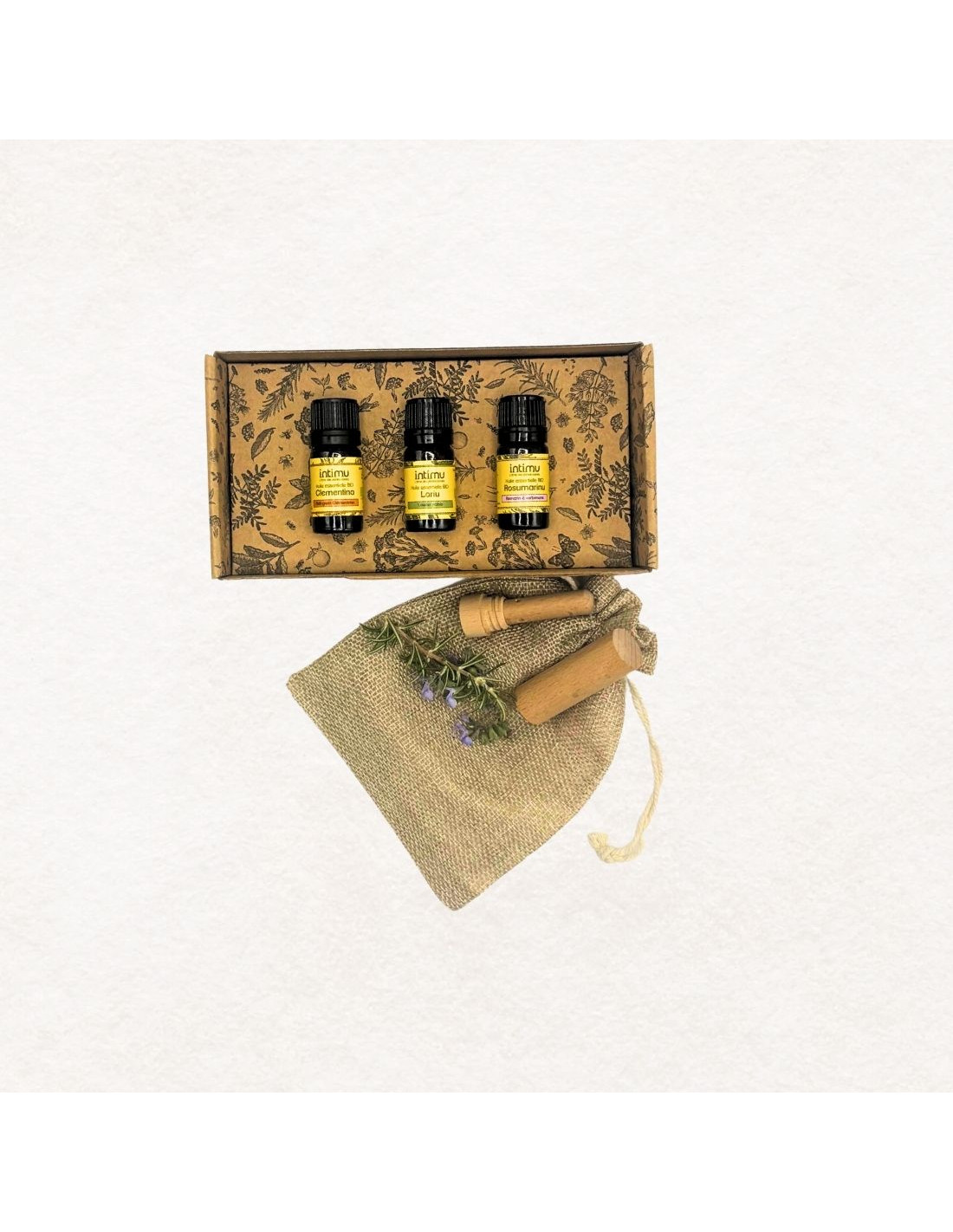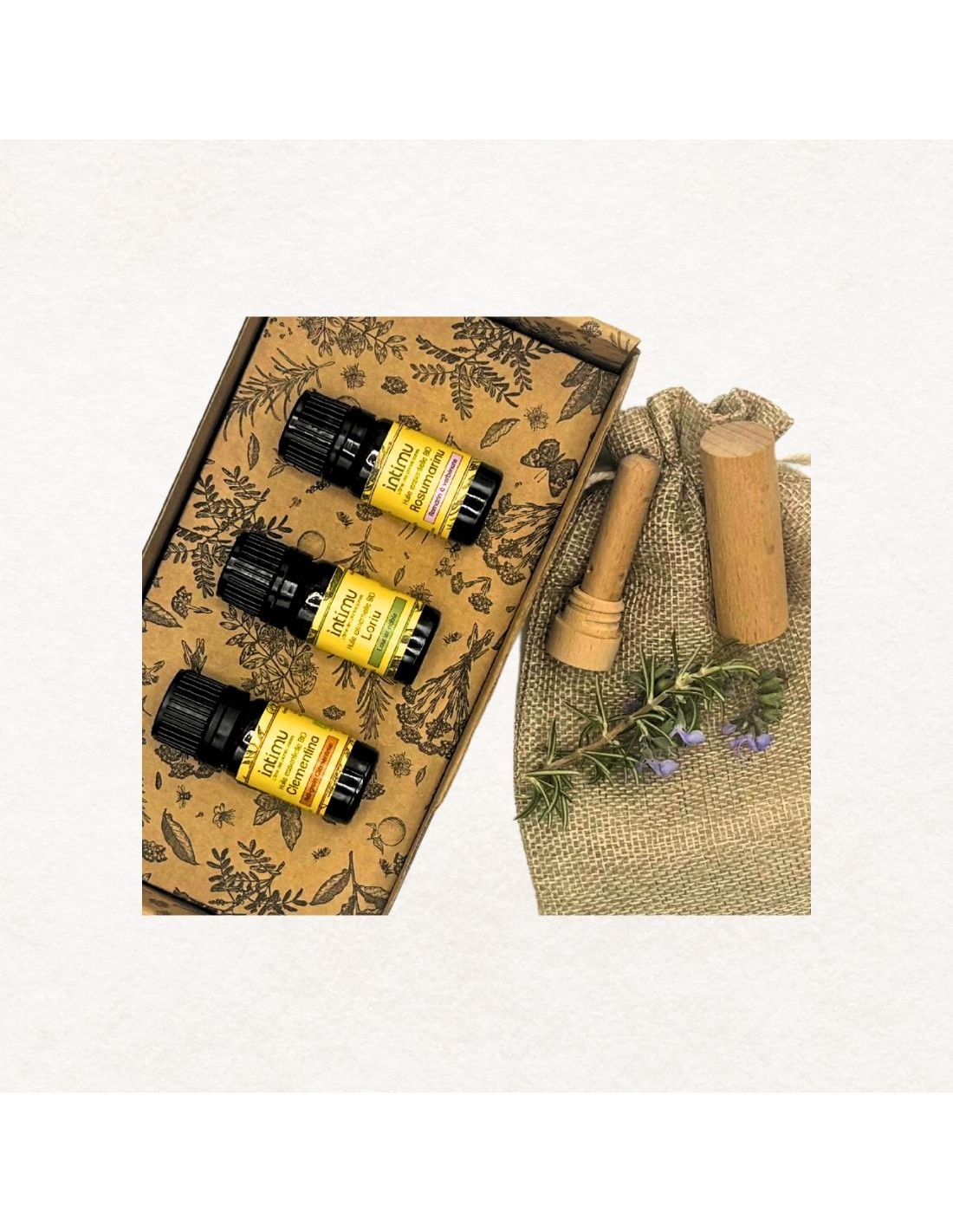 Ce coffret olfactif artisanal réunit trois huiles essentielles corses distillées dans notre Atelier au Cap Corse — Laurier noble, Romarin à verbénone et Petit-Grain Clémentinier — pour vous accompagner selon vos besoins du moment : retrouver la confiance, apaiser le mental, éclaircir les pensées ou simplement respirer la joie.