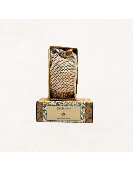 Ce coffret rassemble des accessoires que l’on ne trouve nulle part ailleurs : chacun a été imaginé pour Intimu et cousu à la main en Corse, dans l’atelier de Fanny à Biguglia. Chaque pièce est unique, façonnée avec une attention rare portée aux matières, aux textures et au confort.