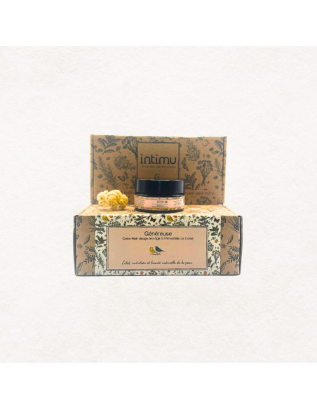 Ce coffret met à l’honneur Généreuse, notre gelée visage à l’immortelle de Corse : un soin premium, sensoriel et profondément régénérant.