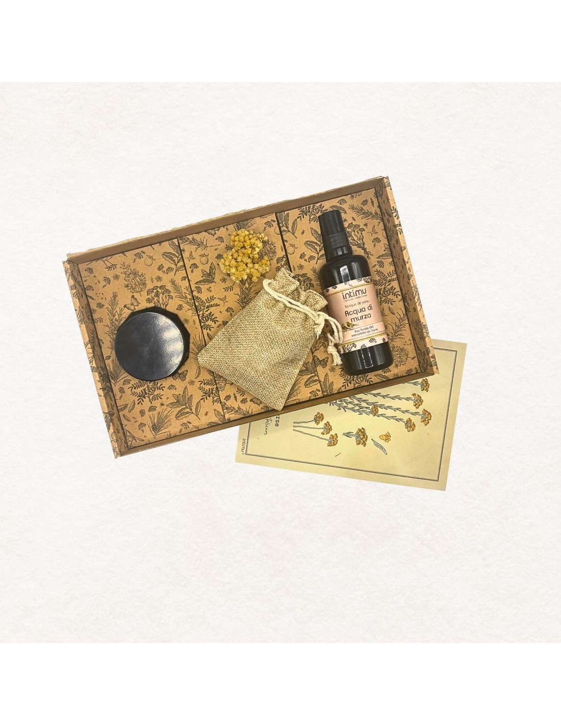 Composition : Gelée visage Généreuse 50 ml, Eau florale d’immortelle 100 ml, Sachet senteur d’immortelle, quelques fleurs d'immortelle séchée, Affiche botanique A5.