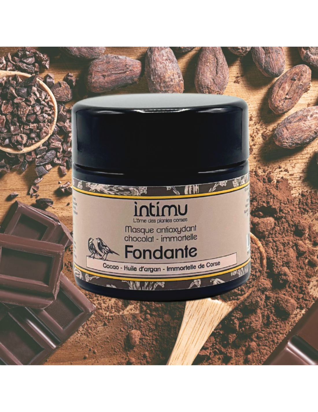 Masque Fondante (100 ml) – soin au cacao et à l’immortelle qui purifie, réconforte et illumine le teint en profondeur.