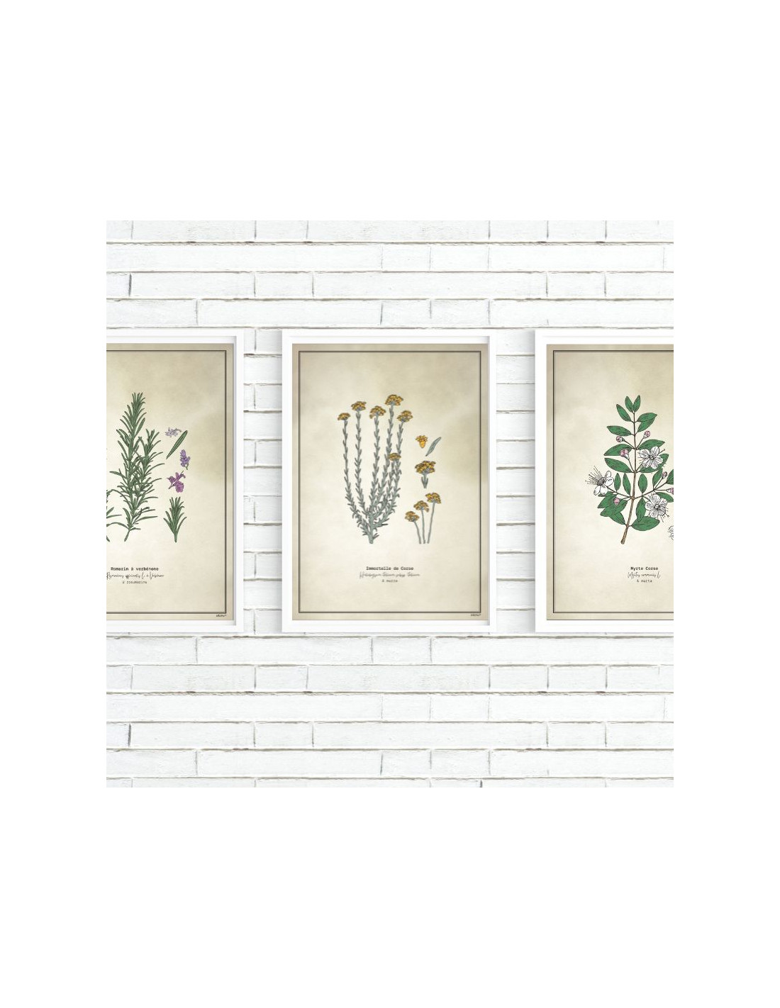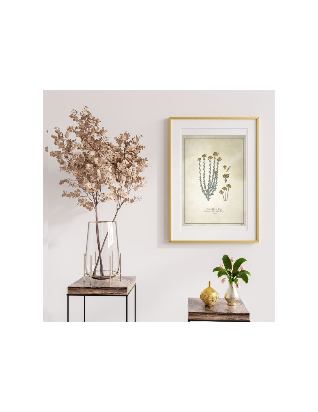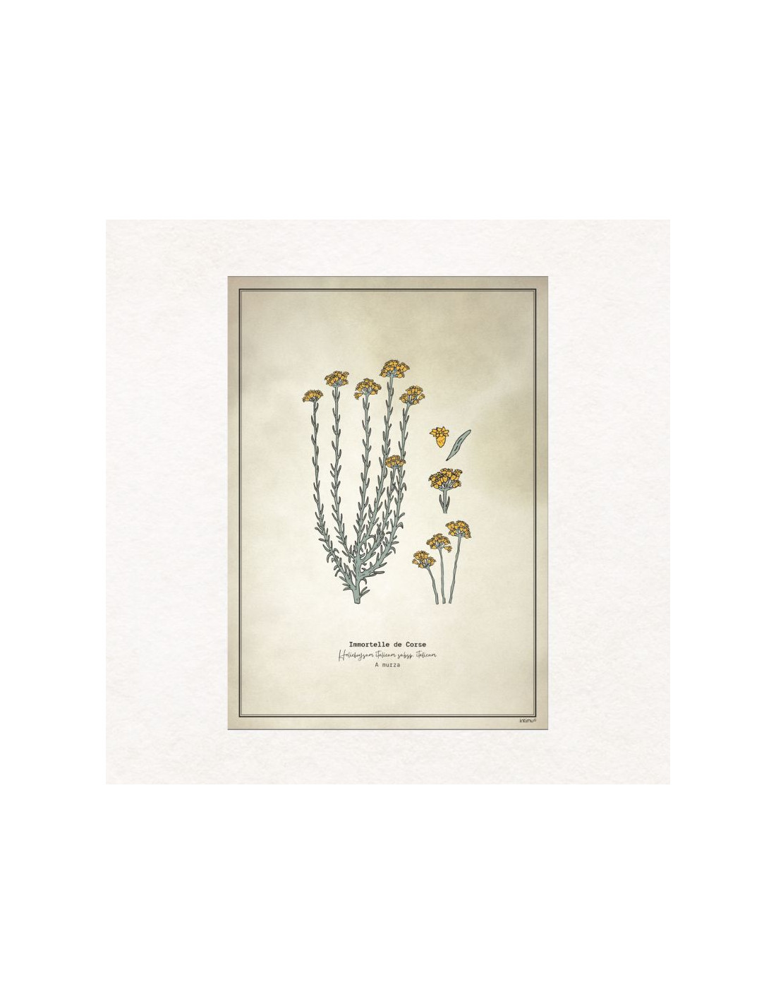 Affiche botanique A5 – Immortelle – une création poétique à encadrer, célébrant la beauté de cette fleur du soleil.