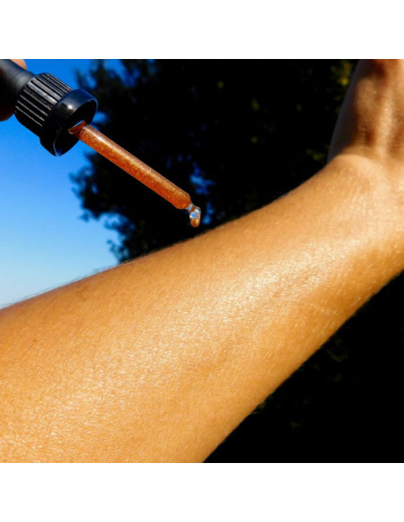 Appliquez ensuite quelques gouttes de l’huile Sublime sur le corps, en massage doux, pour nourrir et lisser la peau.