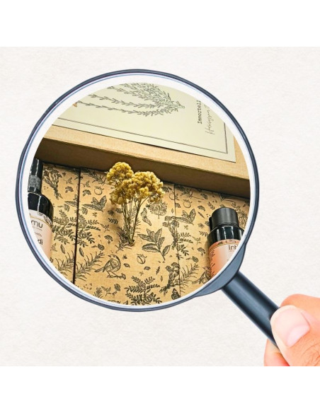 Ce coffret célèbre la plus emblématique des fleurs corses : l’immortelle (ou hélichryse), symbole de lumière, de régénération et de force intérieure.