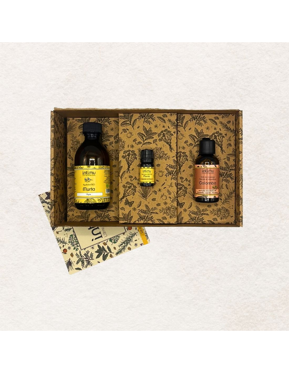 Ce coffret associe l’huile de massage Colomba, l’hydrolat de Myrte vert et l’huile essentielle d’Immortelle de Corse pour détendre, régénérer et revitaliser.
