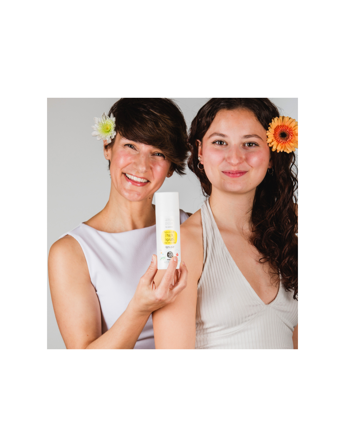 Crème solaire visage et corps BIO Ama-Pola SPF 50 pour une protection solaire optimale de toute la famille, douce, efficace et respectueuse de la peau comme de l’environnement.