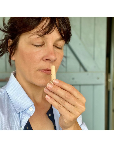 - Versez quelques gouttes de laurier noble ou d'un mélange laurier - myrte/pin sur la mèche du stick inhalateur puis respirez profondément. Un geste rapide, nomade, pour soutenir vos défenses, libérer la respiration et affronter l’hiver plus sereinement.